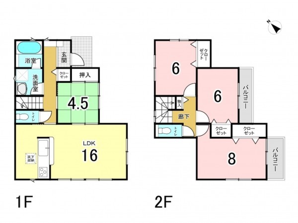▼2階居室は広々8帖1室、6帖2室