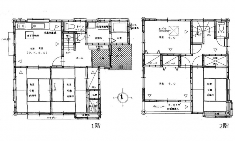 ▼1F/DK 8.0帖 1室 1F/和室 6.0帖 2室 2F/和室 6.0帖 1室 2F/洋室 6.0帖 2室