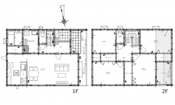 - システムキッチン、カウンターキッチン、食器洗浄乾燥機、IHクッキングヒーター、オール電化、シャンプードレッサー、洗浄便座、浴室乾燥機、複層ガラス、駐車場2台分、床下収納、エコキュート、トイレ2箇所