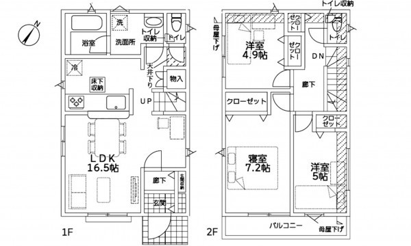 - システムキッチン、カウンターキッチン、シャンプードレッサー、洗浄便座、浴室乾燥機、モニタ付インターホン、駐車場2台分、床下収納、トイレ2箇所