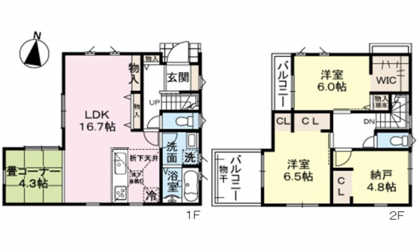 - システムキッチン、カウンターキッチン、洗浄便座、浴室乾燥機、複層ガラス、ウォークインクローゼット、モニタ付インターホン、床下収納、トイレ2箇所