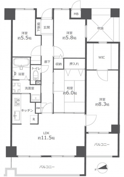 - システムキッチン、シャンプードレッサー、洗浄便座、浴室乾燥機、ウォークインクローゼット、モニタ付インターホン、オートロック、エレベーター